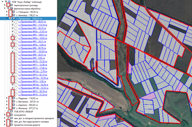 - вмикати/вимикати цілу папку або необхідні їй підпапки (наприклад залишити на карті лише контури обробітку та всі ваші ділянки, або лише ділянки без оренди чи без кадастрових номерів і т.д);